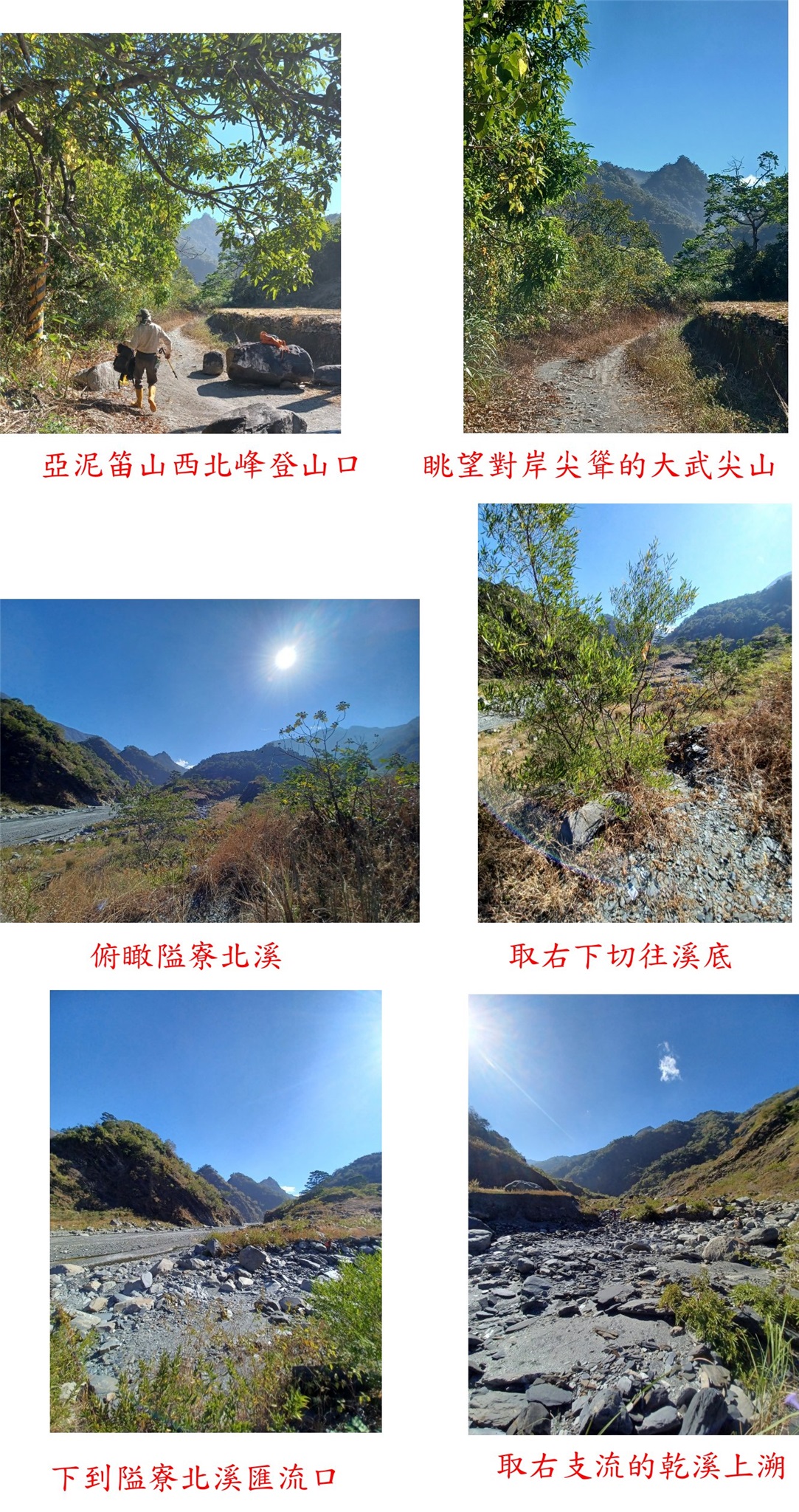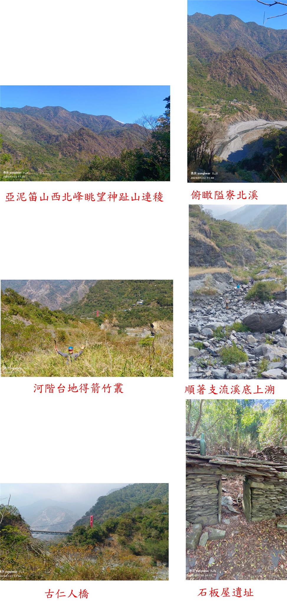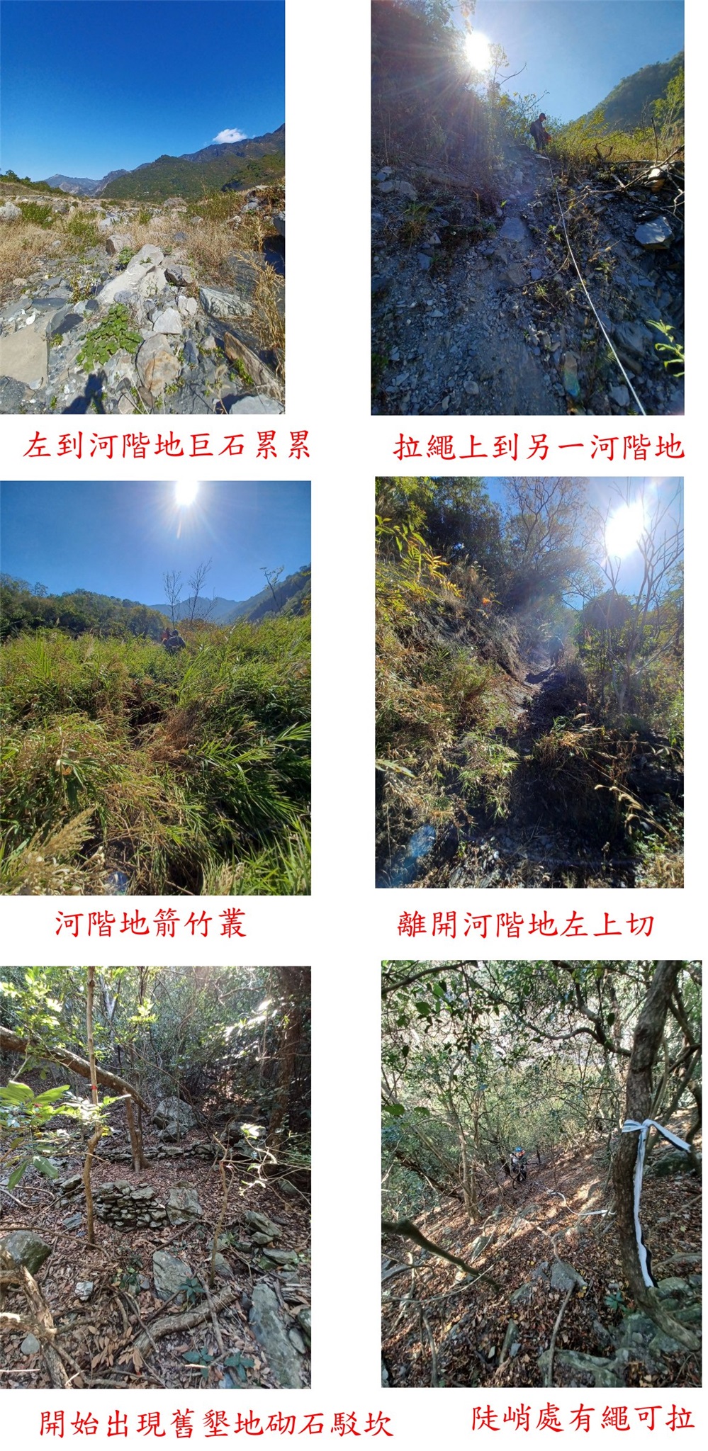 10:20離開溪底,左上溪左的河階地巨石累累,偶有路條或堆石指示方向。