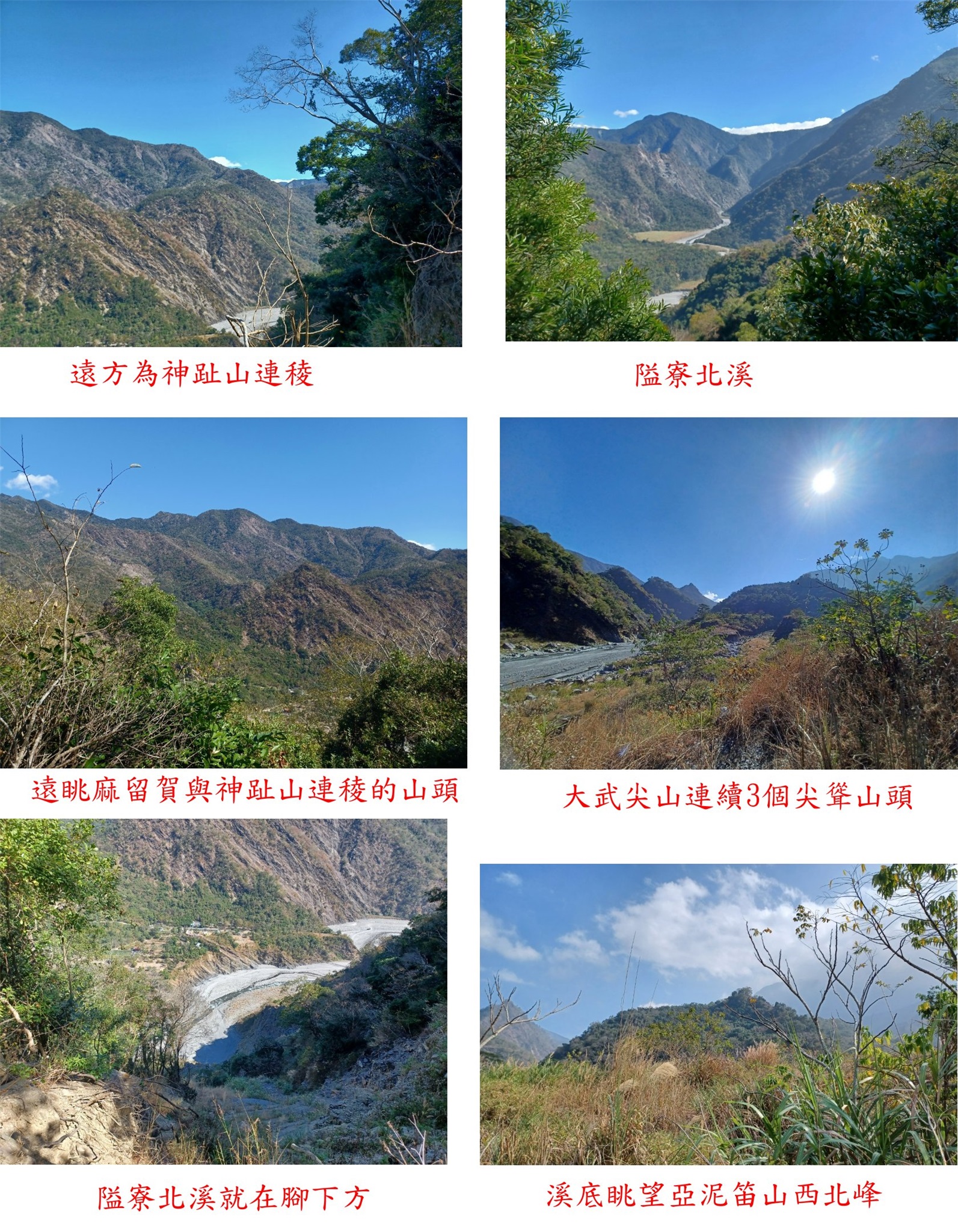 11:41崩壁展望點,北面隘寮北溪就在腳下方,遠眺麻留賀與神趾山連稜的山頭。