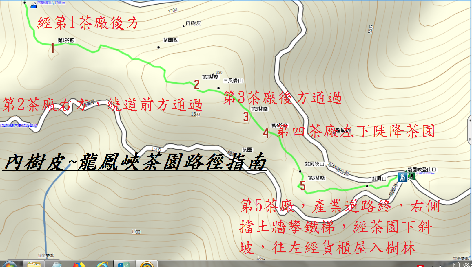 本行程,經gps導航軟體oruxmaps統計約距離約10公里,歷程約311分鐘,爬升高度約950公尺,下降高度約360公尺。本行程需經五家茶廠(遠距不計入)