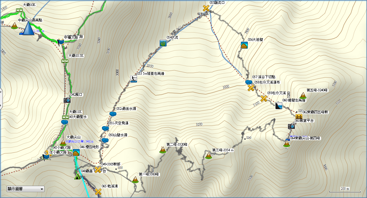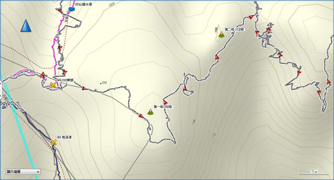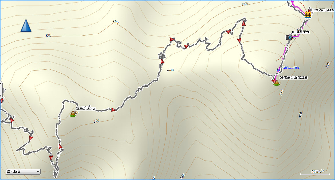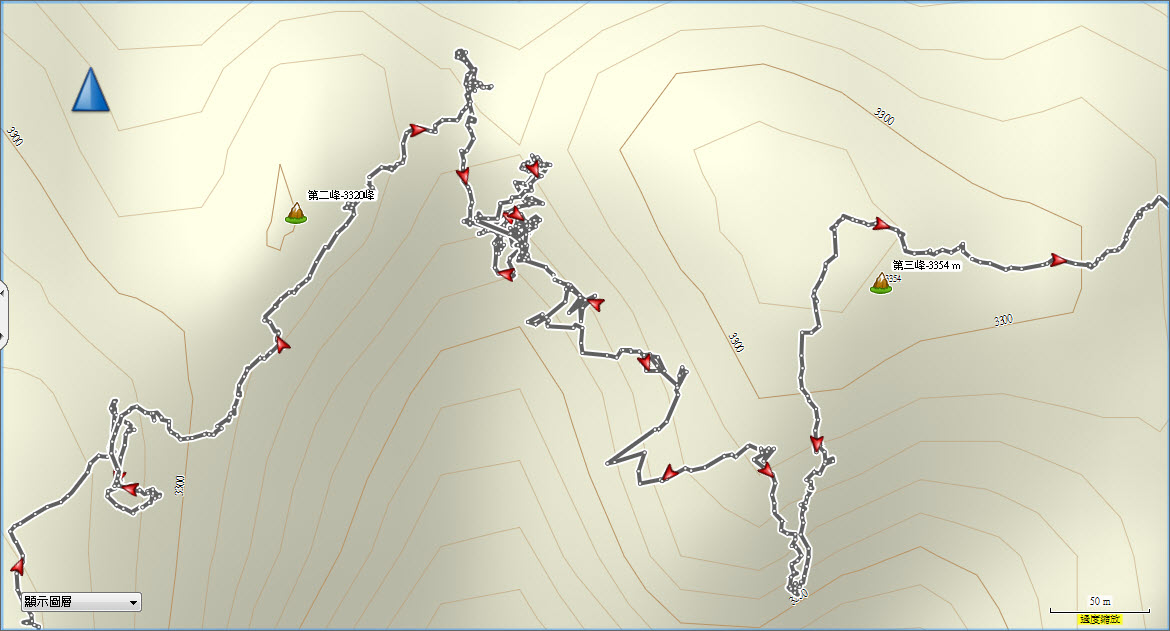 第一峰, 真的是大眾路線,大多人都有這段的GPX, 可以看到23峰的頭,但找不到路條與路徑往第二峰的。