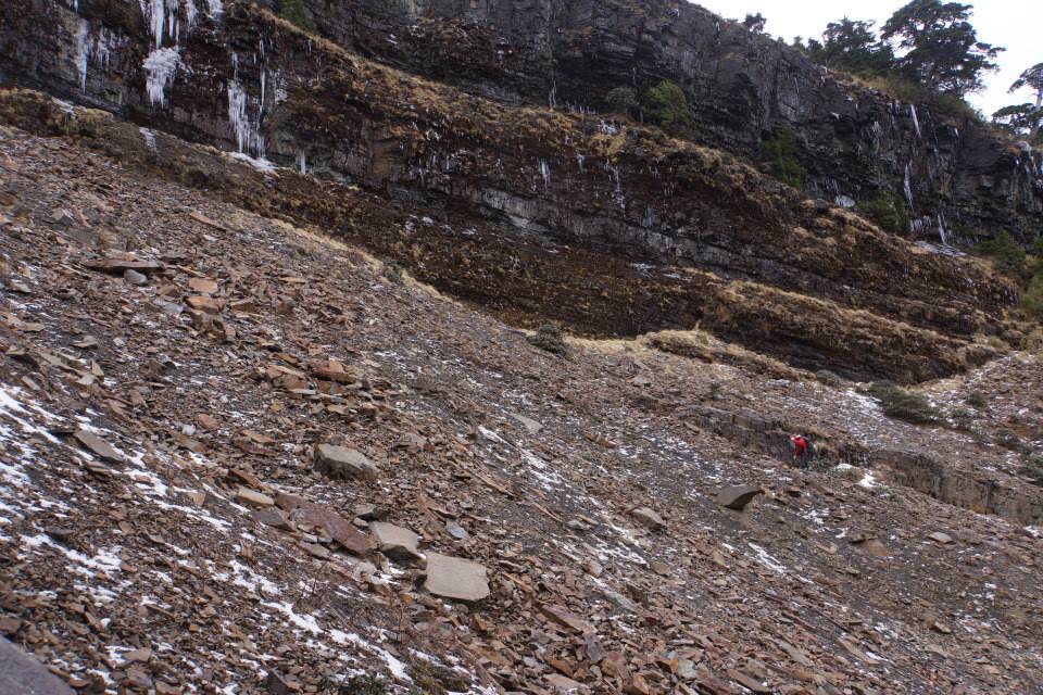 冬季要加帶冰爪,不然谷線回到風口時,易結冰,會爬不上去。