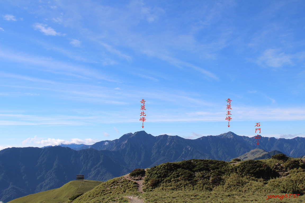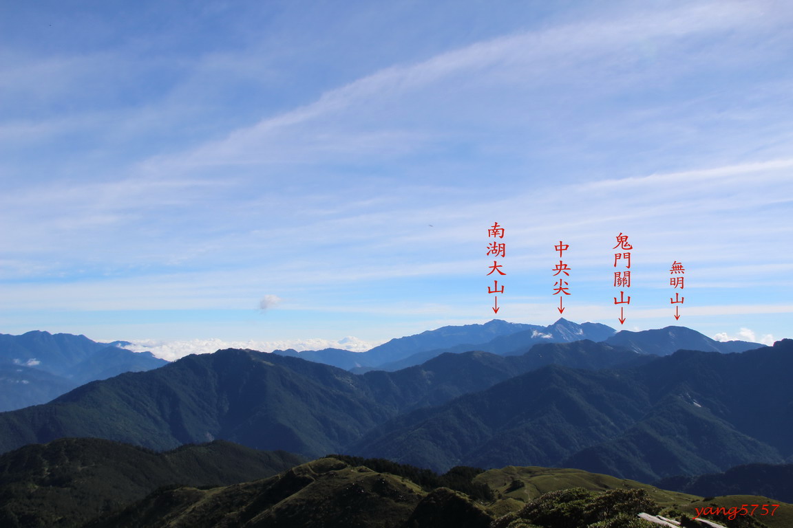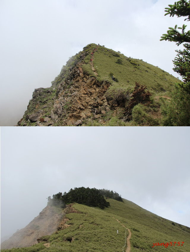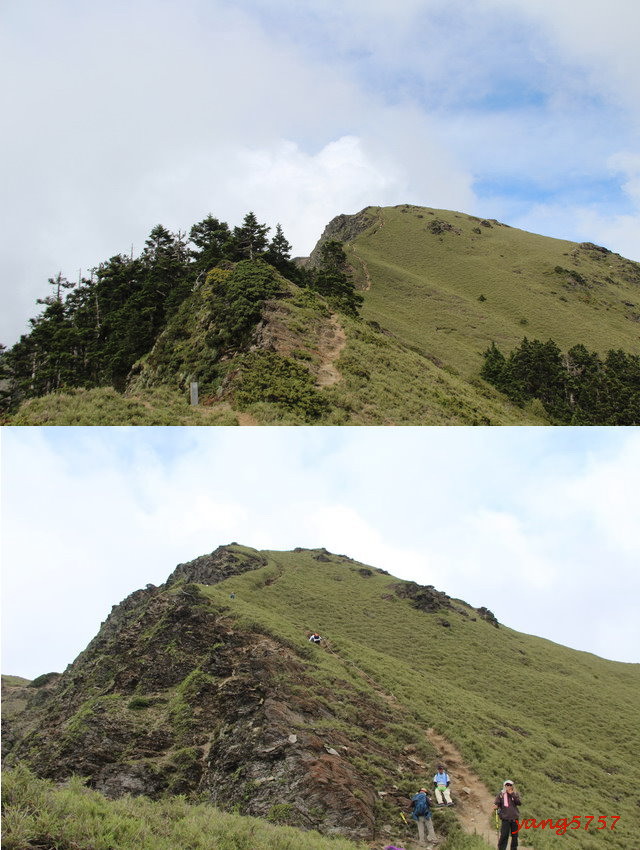 終於看到西峰了,左側那個矮草坡就是本日的主角「合歡山西峰」,難怪山界稱