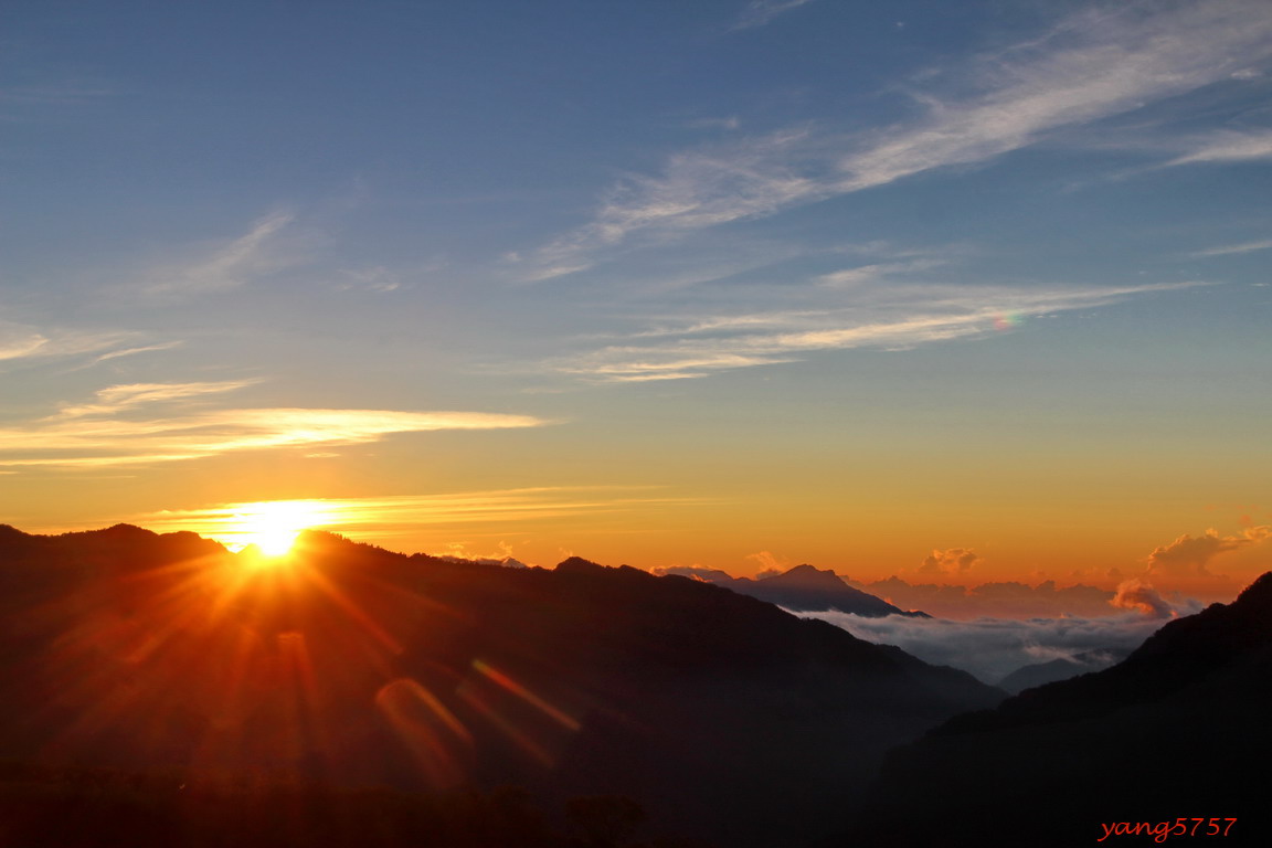 日出依舊從黑岩山冒出來,今天天氣很好左上角的中央尖也看的到;在三角錐山