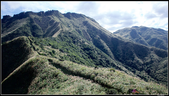 右邊的【半屏山】稜線剛好正對著我們,已經看不出來稜線鋸齒姿態,這個角度看起來像是和藹可親的緩坡。