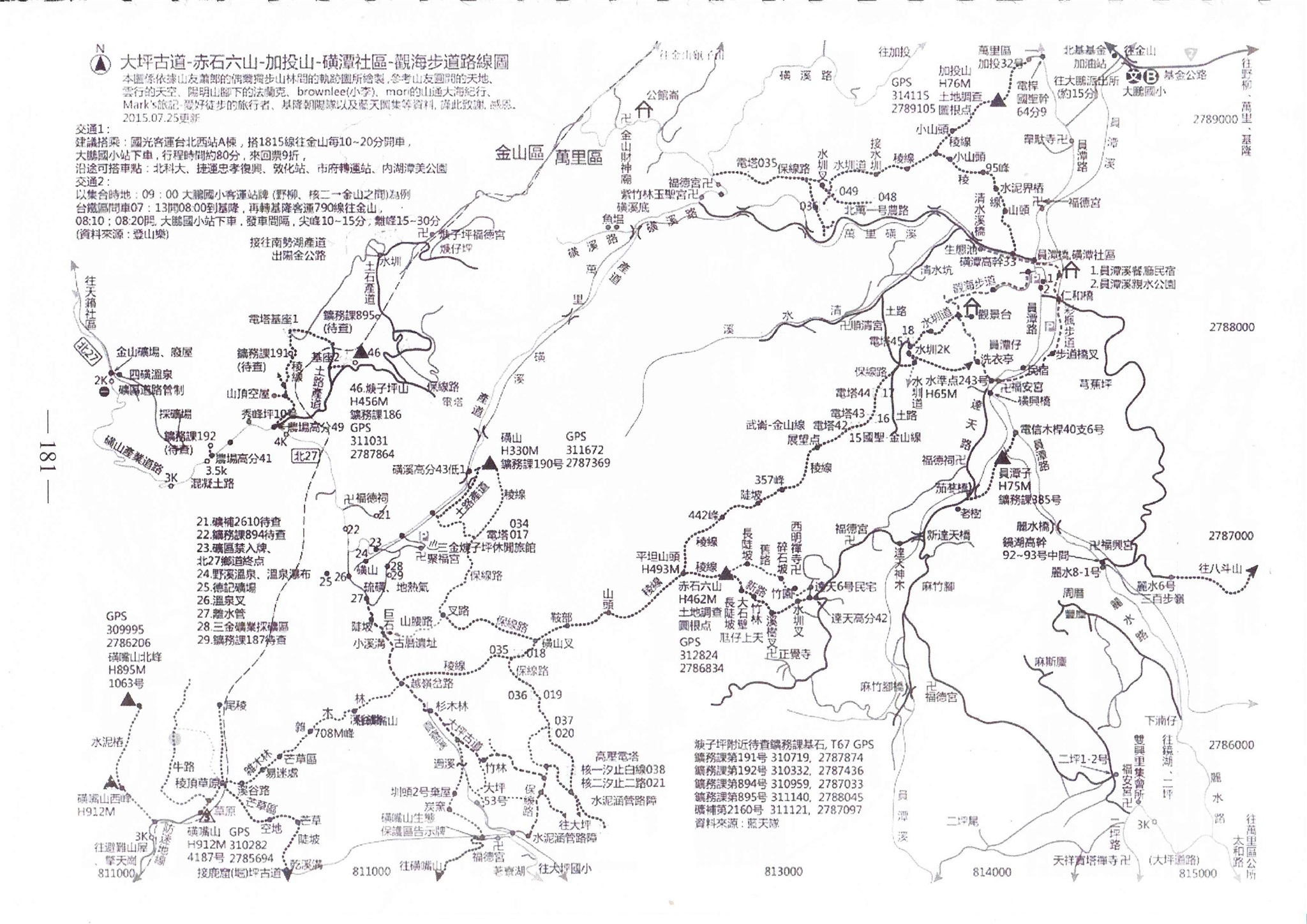 (十二181) PETER ZENG路線圖分享 大坪古道、赤石六山、加投山、磺潭社區觀海步道路線圖一