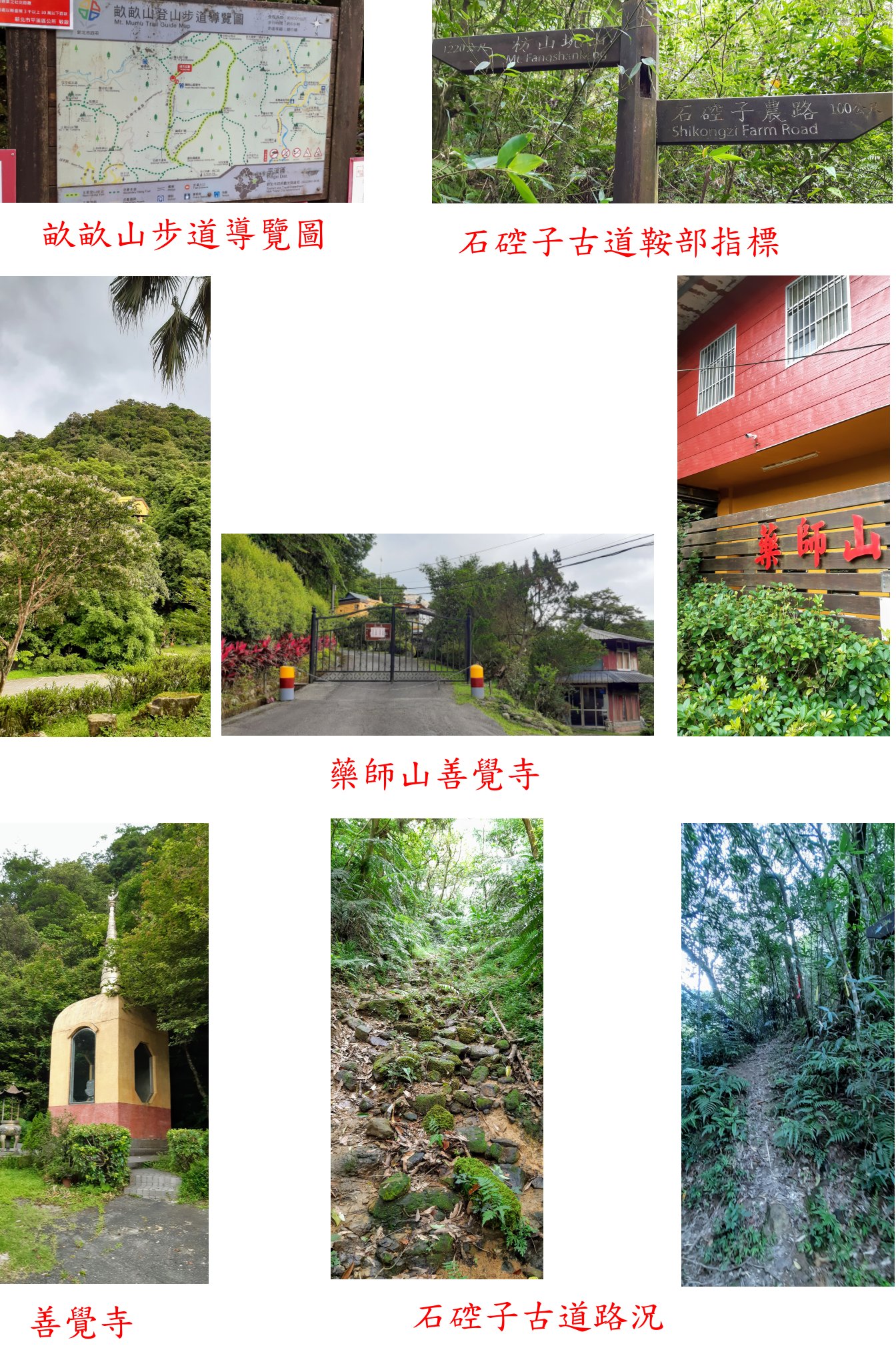 第4座為盤山坑古道,登山口位於盤山坑13號,路況佳的廢棄土路走約0.8K抵古道登山口,續走盤山坑古道緩上至古道鞍部十字路,有林產管理局014山字水泥柱,另還有顆水源保護區界雙溪 15號基石,上山走24分鐘,往返費時76分鐘;第5座為石硿子古道鞍部的水源保護區界雙溪 14號,登山口於藥師山善覺寺附近,走4分鐘即抵達位於稜線鞍部的基石,此點往返費時15分鐘。