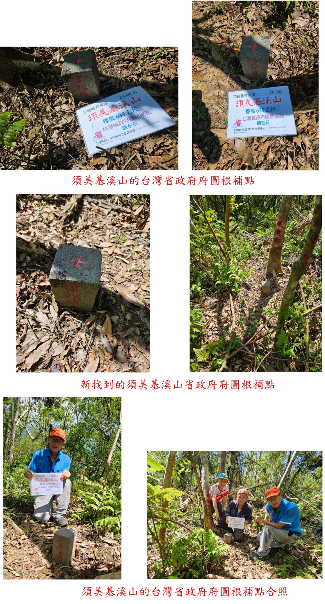 1、須美基溪山:位於花蓮縣秀林鄉,標高639公尺,台灣省政府圖根補點;座標307851 2659369。