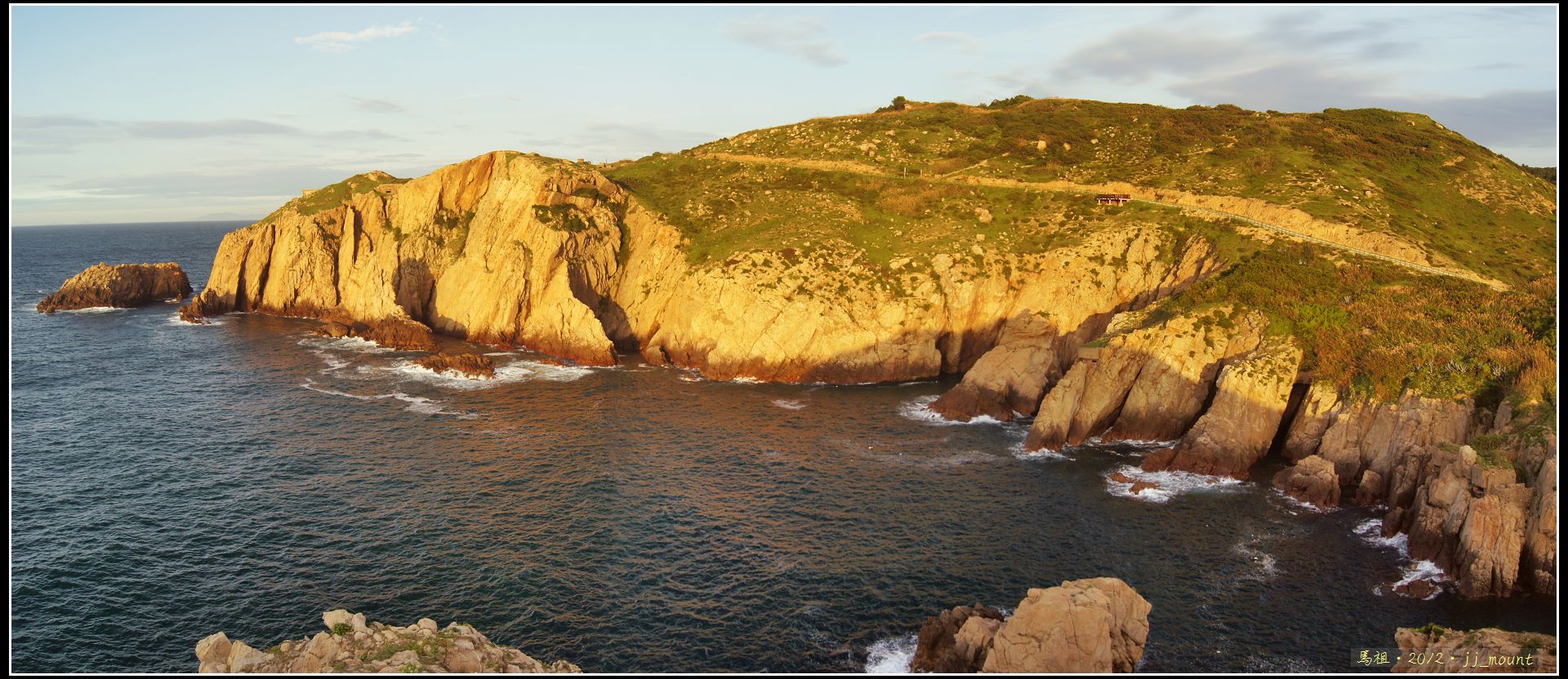 ◎ 在圓形平台西望. 若要打個比方的話, 前景可說是東莒版的「清水斷崖」與「蘇花公路」. (由三張相片拼成)