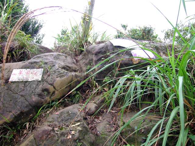 10:18 [17西帽子岩],無基點,路旁有巨石堆疊中間露空,GPS顯示標高491M,與藍天隊第一輯81頁地圖所註490M相符。此處中華山岳飛鷹登山隊舊路牌所書標高400M有誤,另依地圖所示其位置則在[15左叉路]山徑下方山頭,標高411M。H490M