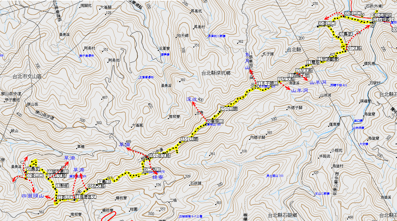 • 蔡兄 當天我也是想獨走筆架連峰,但給天氣預測嚇到,老人家為了安全起見,臨時改爬七星山。 筆架連峰、二格山、貓空尖、十六分山、四面頭山、貓空圓山,仍然保持原始自然,真是一條好行程,所以您的紀錄讀起來又熟悉又親切。 筆架連峰從草湳起登是由上往下出石碇,但周日石碇會塞車,從石碇起登由下往上出草湳比較正統有味道。往石碇除從景美捷運站搭666公車,亦可在木柵捷運站轉搭666公車,往草湳除可在萬芳社區捷運站轉搭小10路公車外,亦可在動物園捷運站轉搭棕15路公車,您在樟湖幹186電桿搭的應該是小10路公車,小11路公車不經過草湳。 貓空圓山取左下到樟湖幹186電桿,直行則下草湳大樹下。貓空尖、十六分山、四面頭山、貓空圓山小徑縱橫交叉,山友笑稱是我管區,歡迎惠顧!
