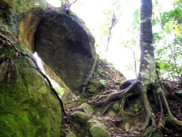 09:41 巨岩,鑿有岩階。