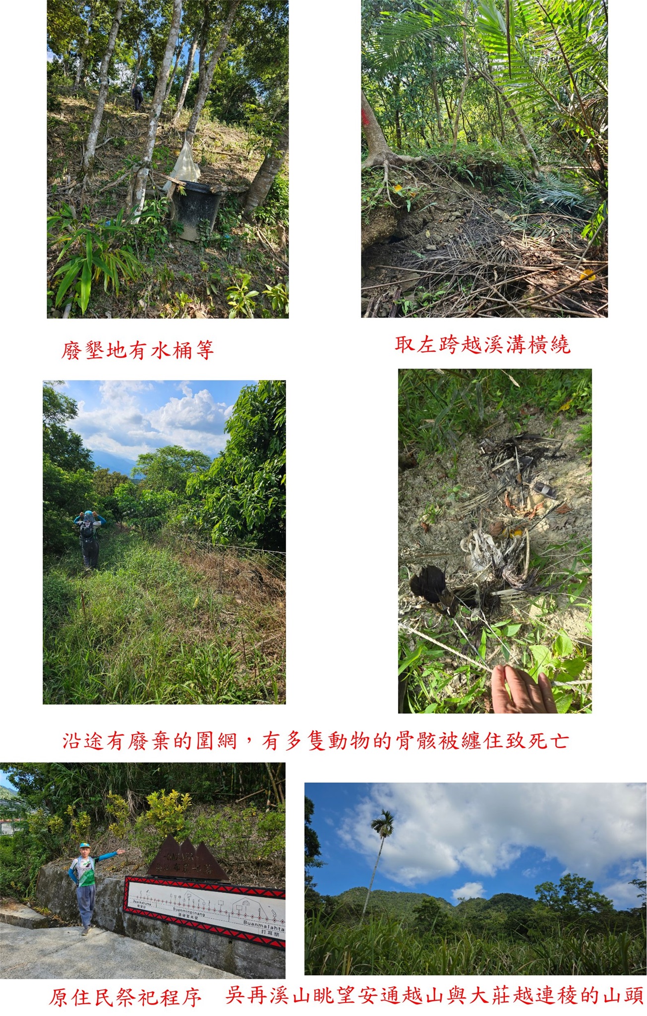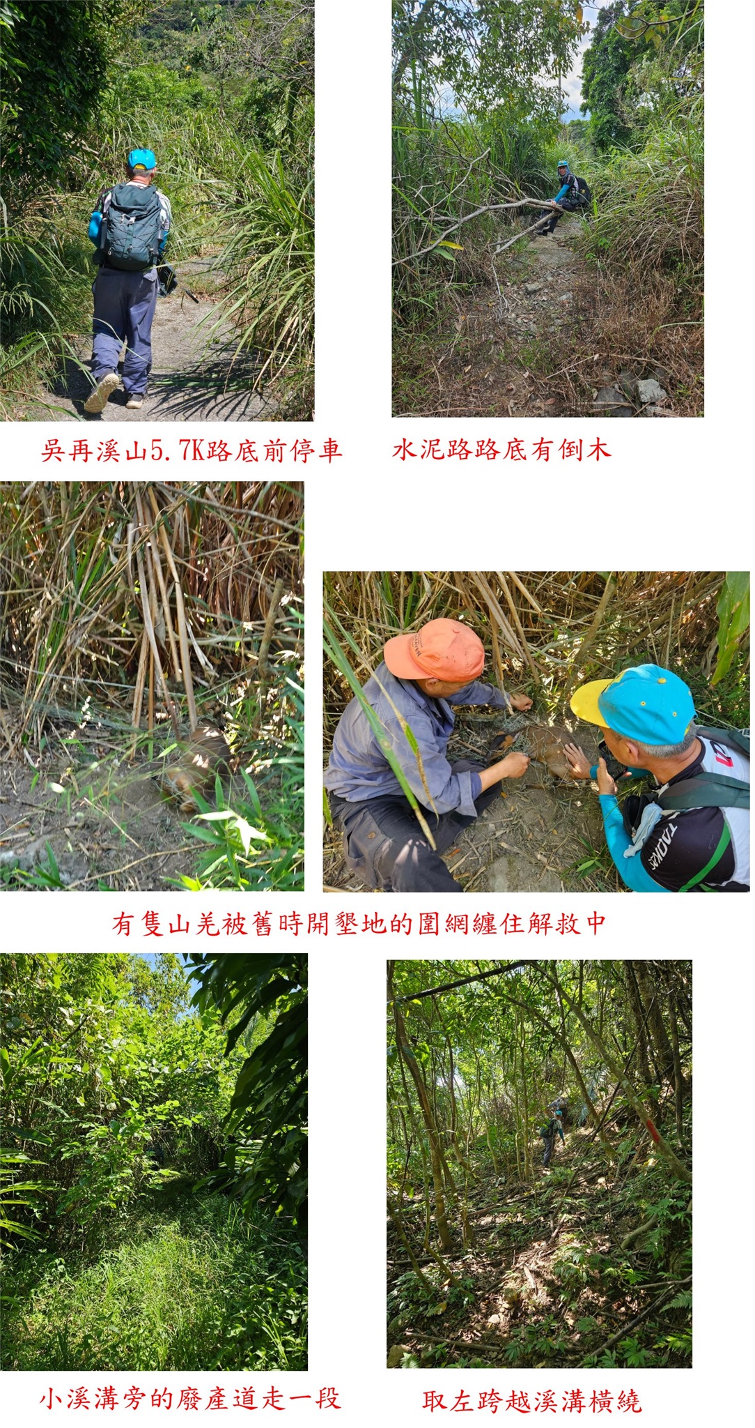 由吳再溪山原路回至台9線285.65K叉路,右轉台9線北行至282.35K叉路,右轉台30線(玉長公路)東行至23.25K叉路【0K】;左轉農路走0.85K叉路,右出台30線257.75K叉路,取直續行至1.25K叉路,右往安通越山3-4157不取;左轉小水泥路至1.45K叉路,取左有一小段土路隨即轉為水泥路至水泥路終點前1.95K處停車,高