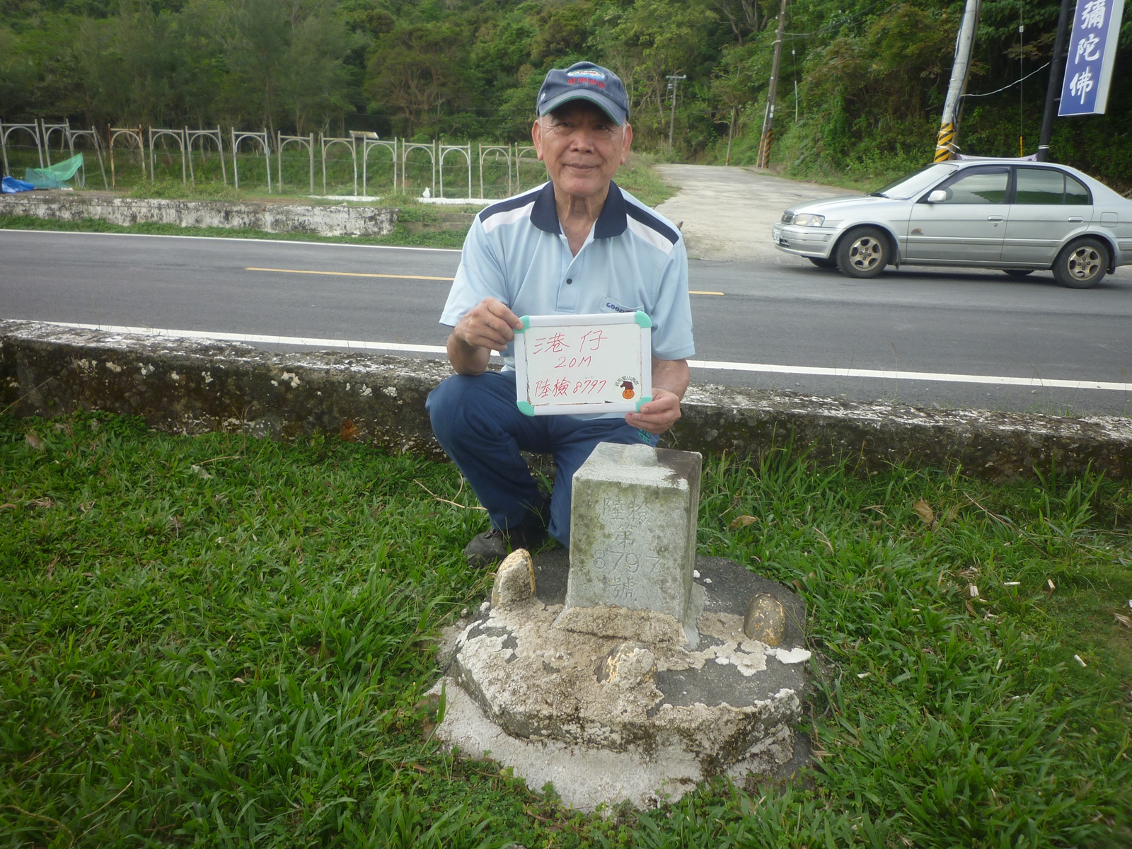 16港仔(標高20M,陸檢8797一等水準點),座標:236217.2448054,隸屬滿州鄉,走200縣道南下,在里程32.5K路左滿州鄉歡迎標牌下(再訪)
