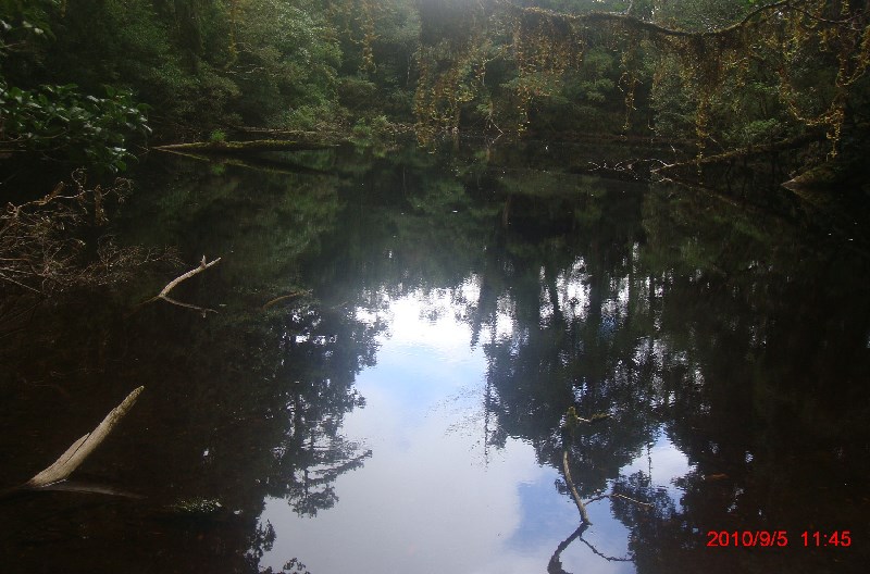 言易迷路,我就小迷路了一下,池水為褐色水質,池中有一倒木,玫瑰池景