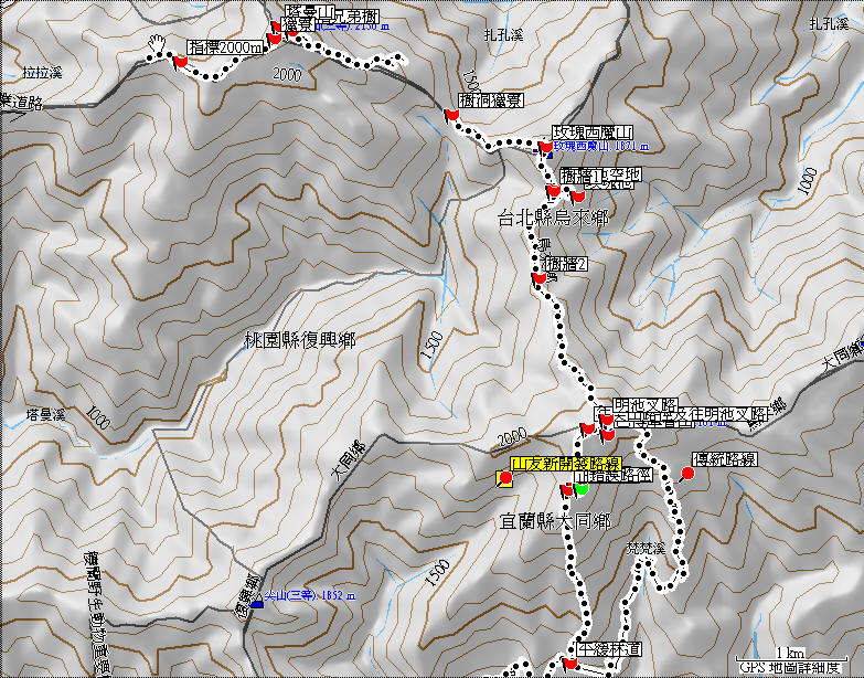 1.塔曼山(H2130M三等三角點),是台北縣最高的山